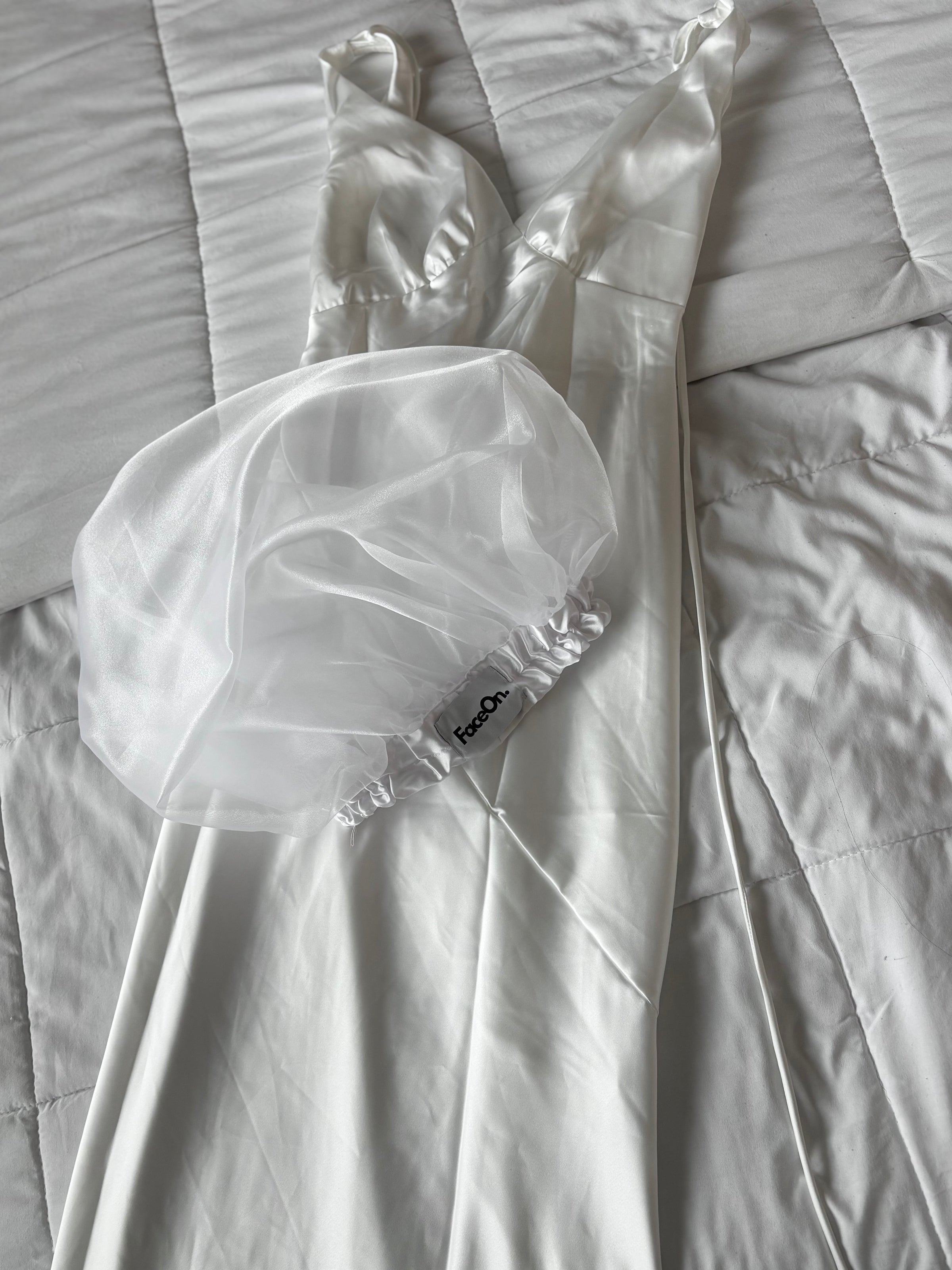 FaceOn elegantly bridges the gap between beauty routines and wardrobe preservation, ensuring neither has to be compromised. Crafted with premium organza fabric and soft satin elastic, our thoughtfully designed solution provides both protection and visibility.